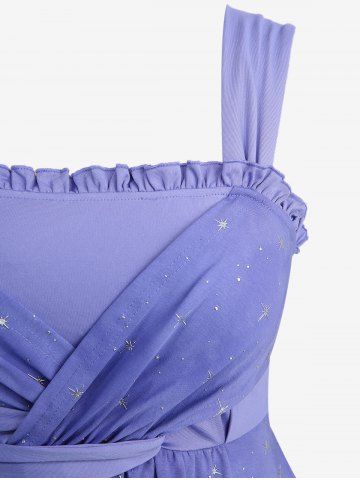 Plus Size Star Silver Stamping Ruched Ruffles Tulip Hem Tank Top - Light Blue - M | Us 10