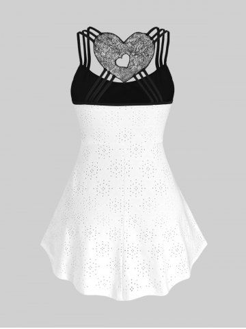 Plus Size Tank Tops > Plus Size Valentine's Day Twist Broderie Anglaise Heart Lace Tank Top