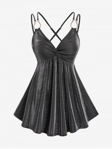 h*****l5Plus Size Twist Open Back Metal Tank TopColor: BLACK Size: M | US 10this shirt is very very cute. I really like how it hangs. It does seem to run a little large. It does have a nice snug shape to it on the top area. It does dip a little low but I did not find that a draw back
