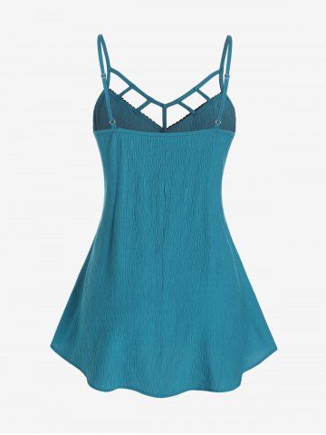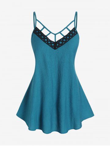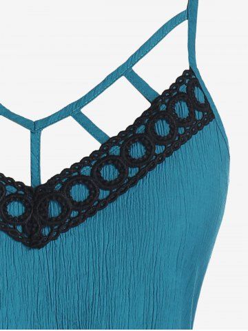 Plus Size Two Tone Lace Panel Strappy Textured Tunic Top - Blue - 1x | Us 14-16