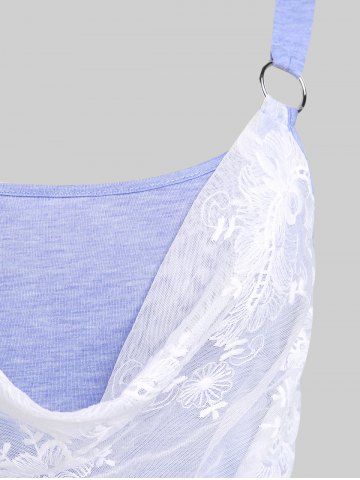 Plus Size Tank Tops > Plus Size Two Tone O Rings Lace Panel Tank Top