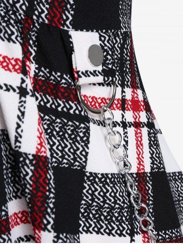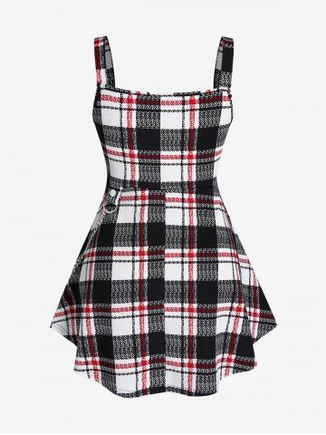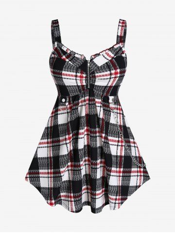 Plus Size Tank Tops > Plus Size Zippered Chains Plaid Tank Top