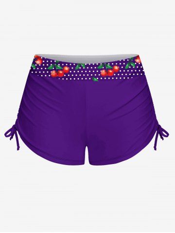 Plus Size Tankinis > 1950s Retro Cherry Dots Print Halter Ruched Cinched Boyleg Tankini Swimsuit