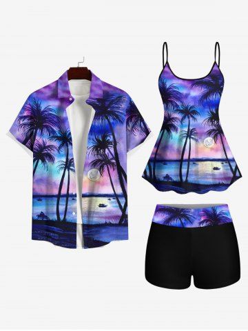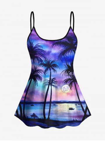 Plus Size Tankinis > Coconut Tree Sun Ombre Sky Tie Dye Print Hawaii Boyleg Tankini Swimsuit