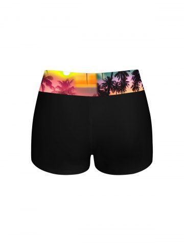 Coconut Tree Tie Dye Ombre Sun Print Boyleg Hawaii Tankini Swimsuit(Adjustable Shoulder Strap) - Multi-a - L