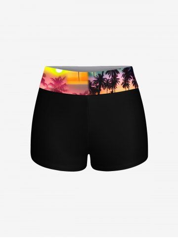 Plus Size Tankinis > Coconut Tree Tie Dye Ombre Sun Print Boyleg Hawaii Tankini Swimsuit(Adjustable Shoulder Strap)