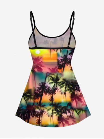 Plus Size Tankinis > Coconut Tree Tie Dye Ombre Sun Print Boyleg Hawaii Tankini Swimsuit(Adjustable Shoulder Strap)
