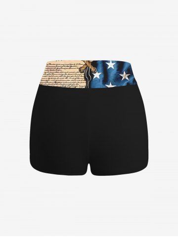 Fashion 3D Lace Up Patriotic American Flag Newspaper Print Boyleg Tankini Swimsuit (Adjustable Shoulder Strap) - Multi-a - 4x