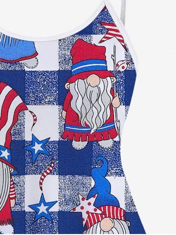 Fashion Cartoon Role Patriotic American Flag Stars Plaid Print Boyleg Tankini Swimsuit (Adjustable Shoulder Strap) - Light Blue - L