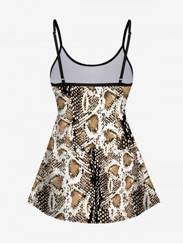 Plus Size Tankinis > Fashion Heart Snake Scale Print Boyleg Backless Tankini Swimsuit (Adjustable Shoulder Strap)