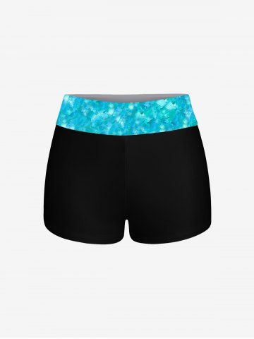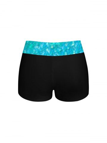 Fashion Paint Heart Water Wave Ripple Print Boyleg Tankini Swimsuit (Adjustable Shoulder Strap) - Blue - M