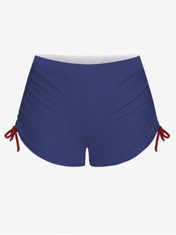 Fashion Skull Patriotic American Flag Twist Halter Backless Boyleg Cinched Tankini Swimsuit - Blue - 5x