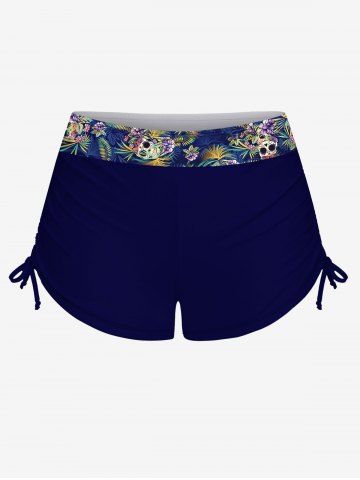 Plus Size Tankinis > Fashion Skulls Floral Coconut Leaves Print Halter Twist Backless Cinched Hawaii Tankini Swimsuit