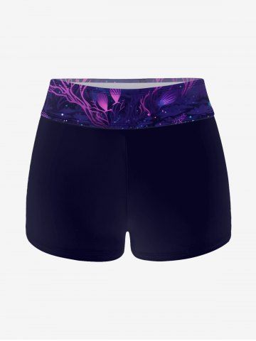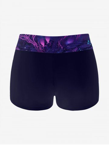 Plus Size Tankinis > Gothic Mermaid Plant Glitter Print Tankini Swimsuit (Adjustable Shoulder Strap)