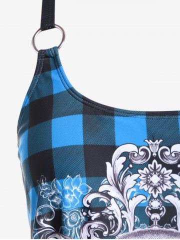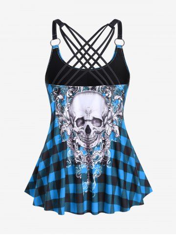 Gothic Skull Plaid Padded Boyleg Strappy Modest Tankini Swimsuit - Blue - 1x | Us 14-16