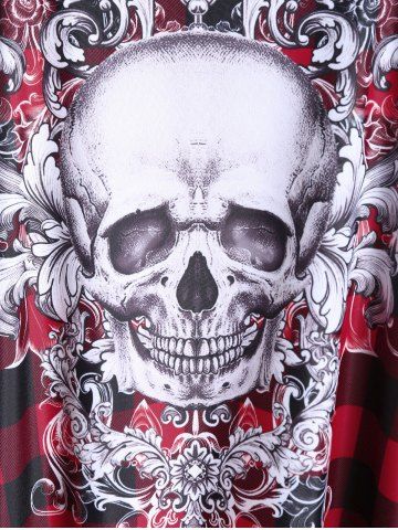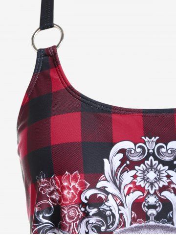 Plus Size Tankinis > Gothic Skull Plaid Padded Boyleg Strappy Modest Tankini Swimsuit