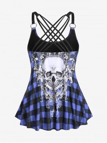 Plus Size Tankinis > Gothic Skull Plaid Padded Boyleg Strappy Modest Tankini Swimsuit