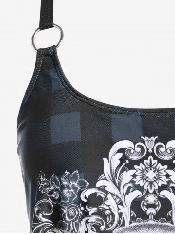Plus Size Tankinis > Gothic Skull Plaid Padded Boyleg Strappy Modest Tankini Swimsuit