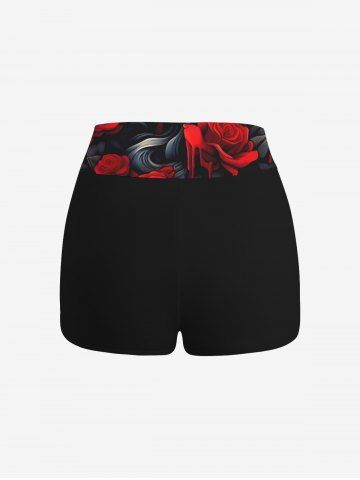 Plus Size Tankinis > Halloween Costume Skull Wizard Bloody Rose Flower Print Boyleg Tankini Swimsuit (Adjustable Shoulder Strap)
