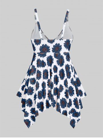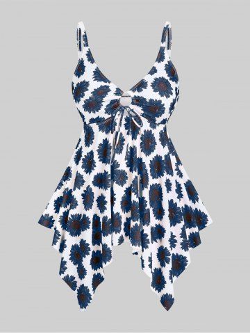 Plus Size Tankinis > Handkerchief Sunflower Print Cinched Plus Size & Curve Modest Tankini Swimsuit
