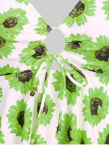 Plus Size Tankinis > Handkerchief Sunflower Print Cinched Plus Size & Curve Modest Tankini Swimsuit