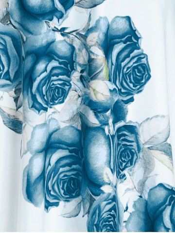 High Waist Rose Print Plus Size & Curve Modest Tankini Swimsuit - Blue - 4x
