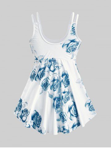 Plus Size Tankinis > High Waist Rose Print Plus Size & Curve Modest Tankini Swimsuit