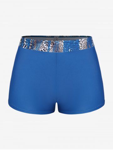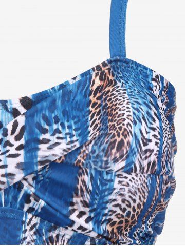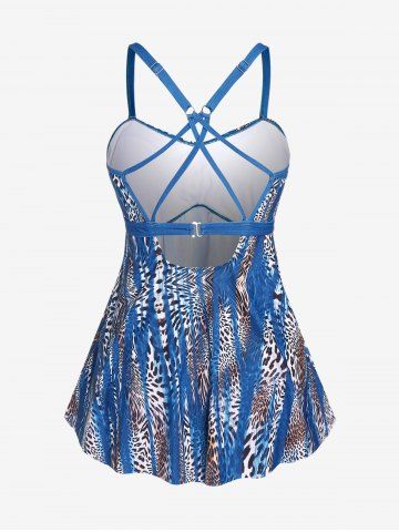Leopard Print Twist Crisscross Boyleg Tankini Swimsuit - Deep Blue - L | Us 12