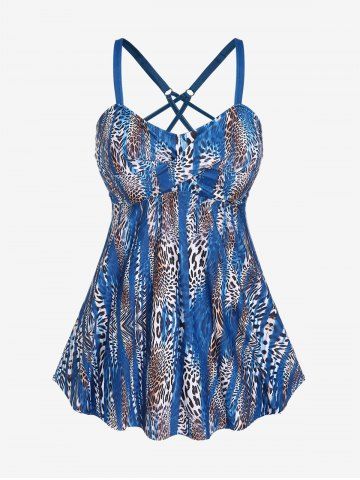 Plus Size Tankinis > Leopard Print Twist Crisscross Boyleg Tankini Swimsuit