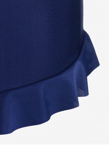 Mermaid Print Lace Up Three Piece Tankini Swimsuit - Deep Blue - L | Us 12