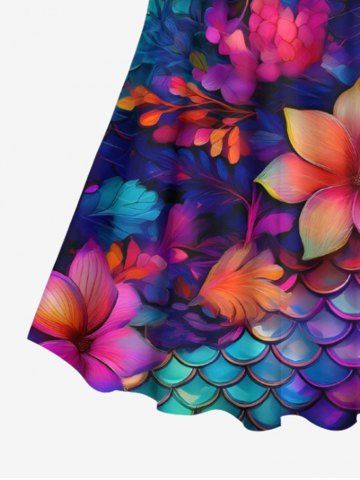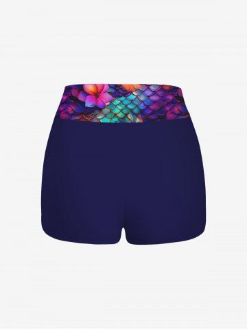 Plus Size Tankinis > Ombre Mermaid Scale Flower Print Hawaii Twist Halter Backless Boyleg Tankini Swimsuit