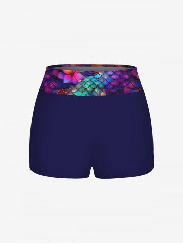 Ombre Mermaid Scale Flower Print Hawaii Twist Halter Backless Boyleg Tankini Swimsuit - Deep Blue - 3x