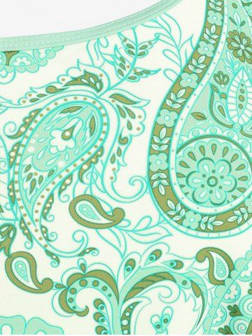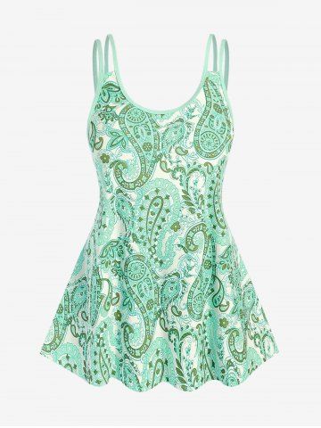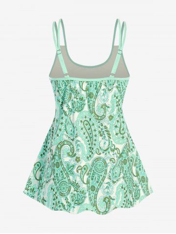 Plus Size Bohemian Paisley Print Tankini Swimsuit with Boyshorts - Green - L | Us 12