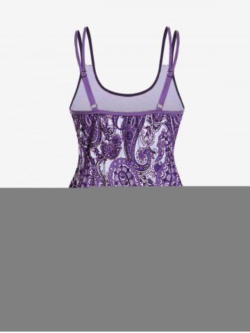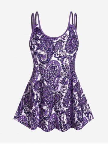 Plus Size Bohemian Paisley Print Tankini Swimsuit with Boyshorts - Concord - 1x | Us 14-16