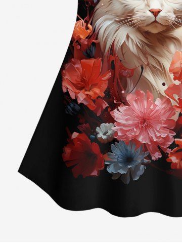 Plus Size Cat Flowers Print Boyshorts Tankini Set - Black - L