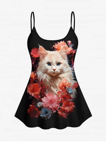 Plus Size Cat Flowers Print Boyshorts Tankini Set - Black - 2x