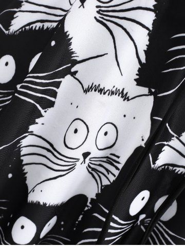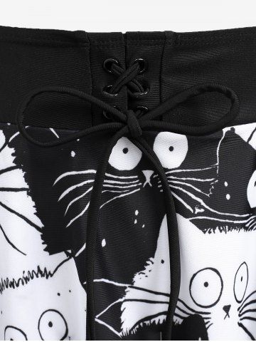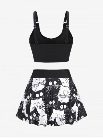 Plus Size Cats Printed Lace Up Skirted Tankini Swimsuit - Black - 3x | Us 22-24