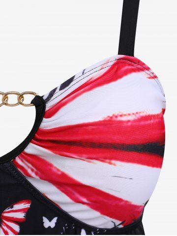 Plus Size Chain Panel Patriotic American Flag Butterfly Print Tankini Swimsuit - Black - L | Us 12