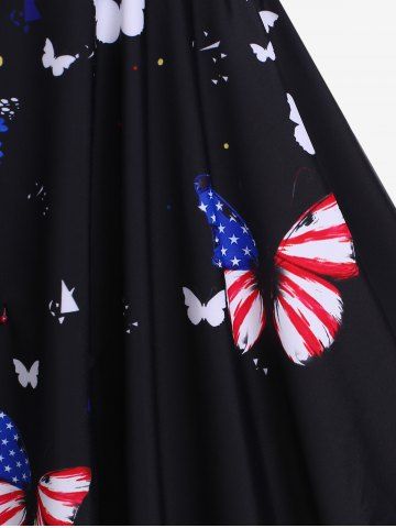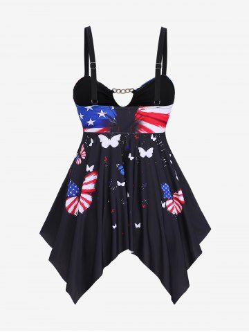 Plus Size Chain Panel Patriotic American Flag Butterfly Print Tankini Swimsuit - Black - 2x | Us 18-20