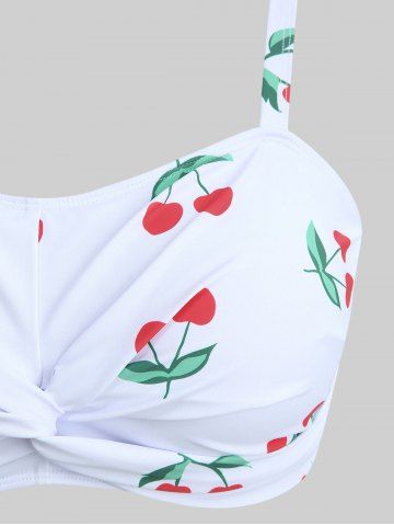 Plus Size Tankinis > Plus Size Cherry Print Twist Ruched Bottom Tankini Swimsuit