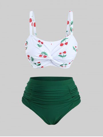 Plus Size Tankinis > Plus Size Cherry Print Twist Ruched Bottom Tankini Swimsuit