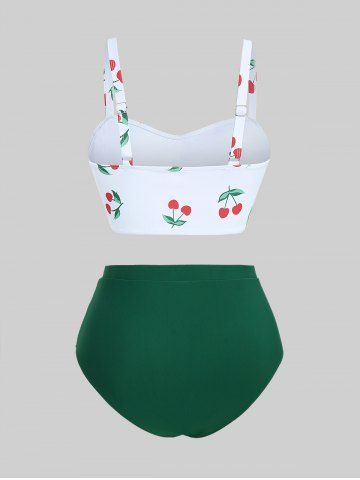 Plus Size Tankinis > Plus Size Cherry Print Twist Ruched Bottom Tankini Swimsuit