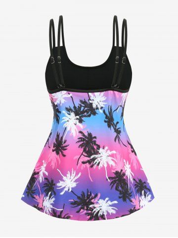 Plus Size Tankinis > Plus Size Coconut Tree Ombre Print Boyleg Tankini Swimsuit