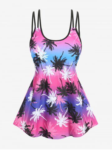 Plus Size Tankinis > Plus Size Coconut Tree Ombre Print Boyleg Tankini Swimsuit