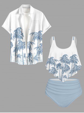 Plus Size Coconut Tree Print Cover Ruched Hawaii Tankini Swimsuit - Light Blue - 2x