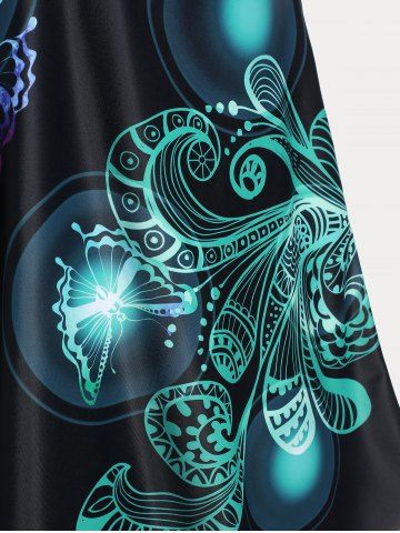 Plus Size & Curve Butterfly Padded Boyleg Modest Tankini Swimsuit - Black - L