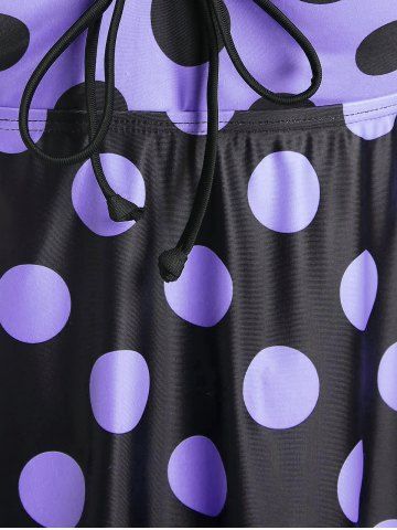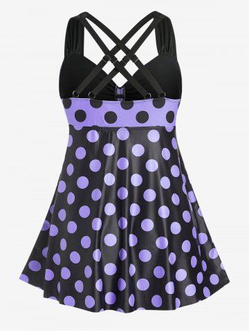 Plus Size & Curve Cinched Polka Dot Crisscross Tankini Swimsuit - Light Purple - L