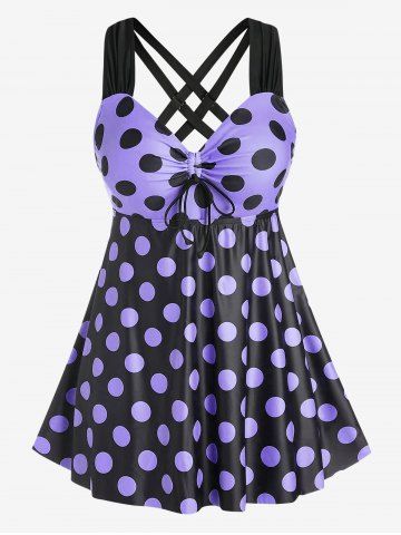 Plus Size & Curve Cinched Polka Dot Crisscross Tankini Swimsuit - Light Purple - 4x