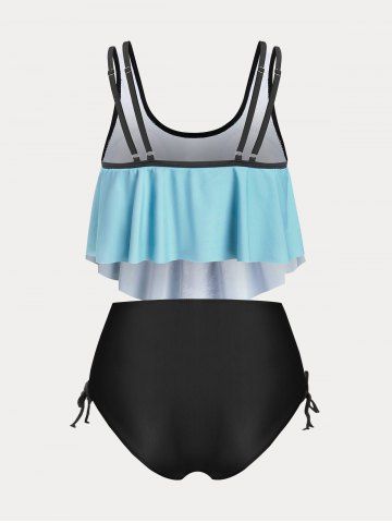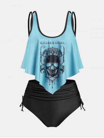 Plus Size Tankinis > Plus Size & Curve Gothic Skull Print Ruffled Overlay Tankini Swimwear