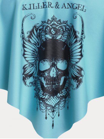 Plus Size & Curve Gothic Skull Print Ruffled Overlay Tankini Swimwear - Deep Green - 2x